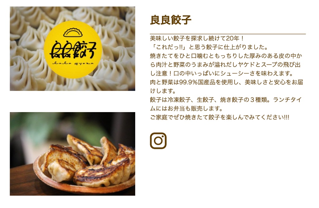 肉と野菜は99.9%国産品を使用し、美味しさと安心をお届けします。餃子は冷凍餃子、生餃子、焼き餃子の3種類。ランチタイムにはお弁当も販売します。